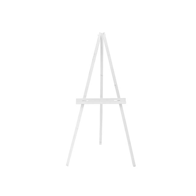 This easel stands 130cm tall and is designed to hold up to 6kg of weight. The bottom shelf is adjustable, whereby it can be moved to sit lower or higher to accomodate different sizes of posters, frames, or canvases. It is sold individually.