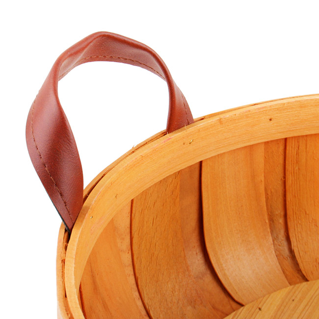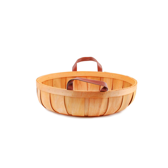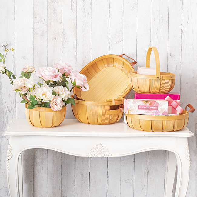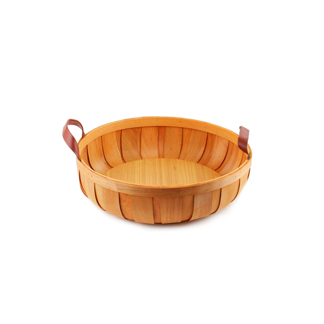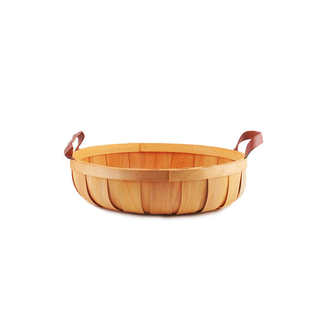 Made from thin sliced natural wood chip making it lightweight. Basket measures 32cm in diameter and 8cm in height. Base measures 24cm in diameter. Available in 2 sizes and 3 colours.