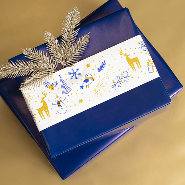 This wrapping roll also provides a festive means to secure gift boxes, gourmet boxes, grazing boxes, magnetic boxes, or hamper boxes this festive season.
