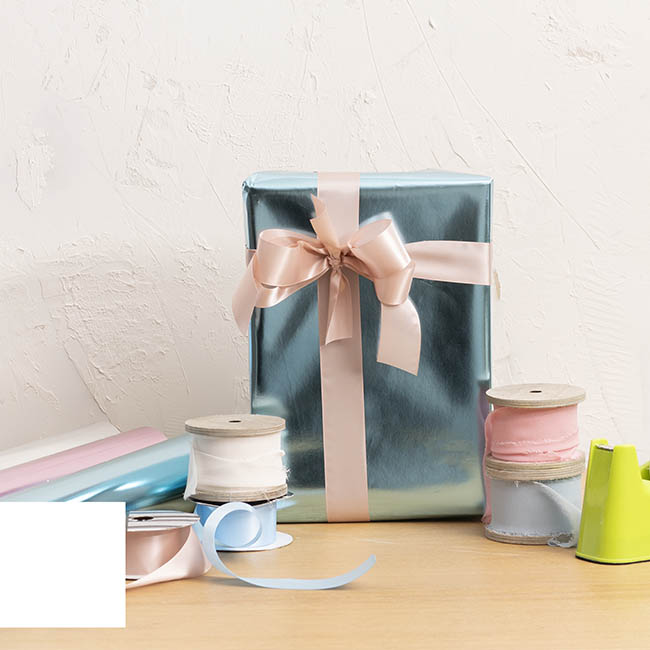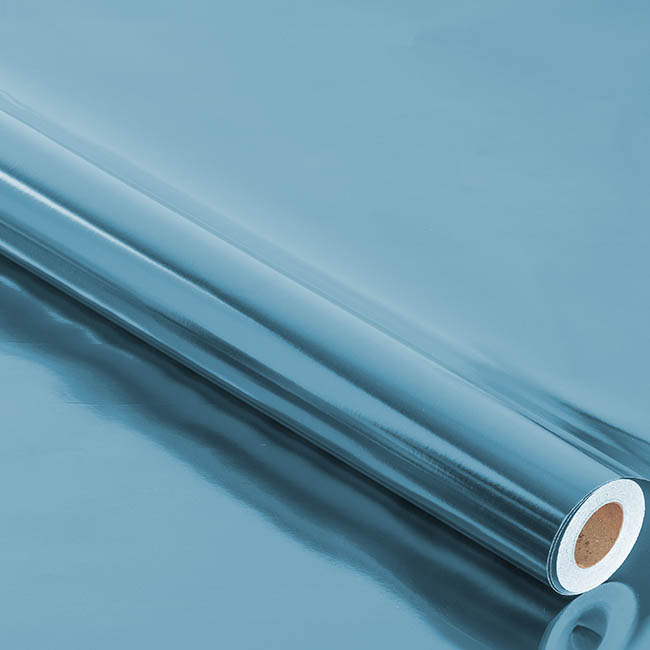 This paper is unique in that it is a metallized paper. That is, paper is coated with a layer of pure aluminium, and then a semi-gloss finish. This finish provides decorative and protective properties to this unique wrapping paper. This wrap features white backing.