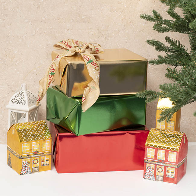 This paper is unique in that it is a metallized paper. That is, paper is coated with a layer of pure aluminium, and then a semi-gloss finish. This finish provides decorative and protective properties to this unique wrapping paper. This wrap features white backing.
