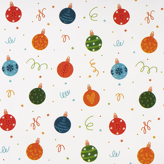 Wrapping Paper Roll Bold Baubles Gloss White (50cmx50m)