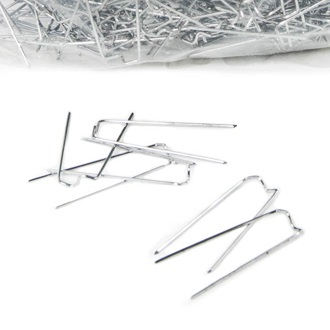 Mossing pins known as wreath pins are used to secure greenery, flowers and natural moss to styrofoam wreaths or any soft material that allows you to press a pin into with your finger strength. Extensively used for sympathy floral tributes. They are available in a variety of sizes. In Australia we favour 43mm and 500g bags. There are approximately 700 pins per bag.