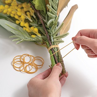 7. Secure your arrangement with an elastic band and attach a hydrating solution. For a sustainable approach to wrapped bouquets, we recommend our Get it Fresh Wrap
