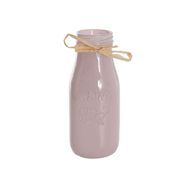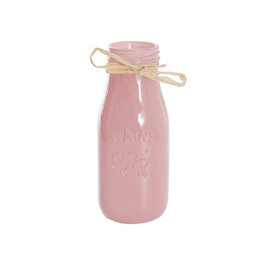 Glass Milk Bottle Solid Glossy Pink (6cmDx15.5cmH)