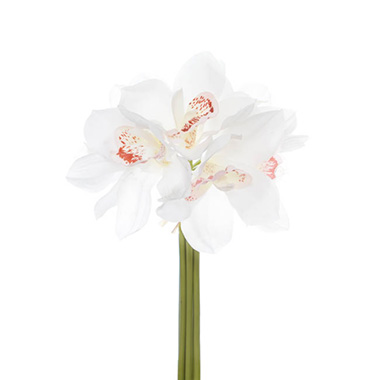 Cymbidium Orchid Bouquet Real Touch 6 Flowers White (25cmH)