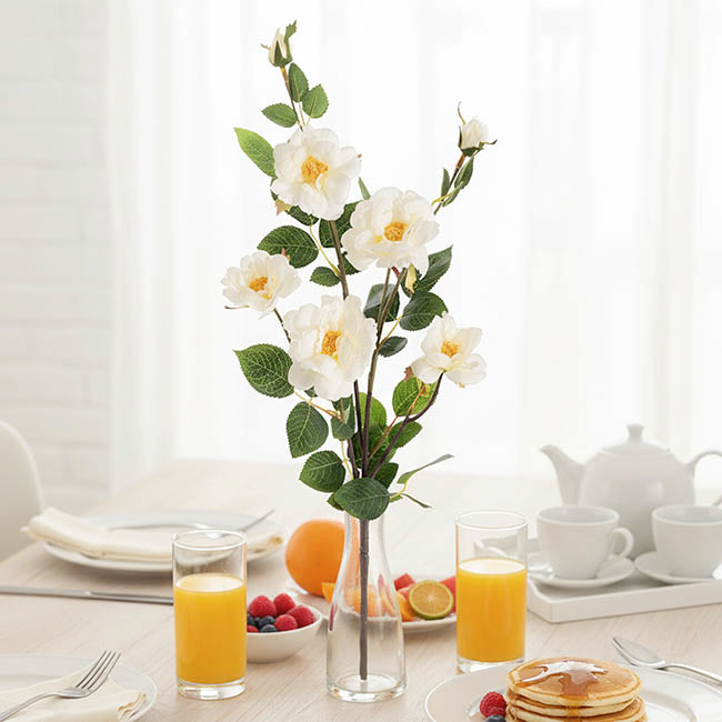 Add a touch of romance to your floral arrangements with our Iceland Rose Spray in White. These versatile blooms make excellent fillers and this flower spray, with 2 buds and 5 flower heads ranging from 5.5cm to 7cm in diameter, adds depth and dimension to any design.