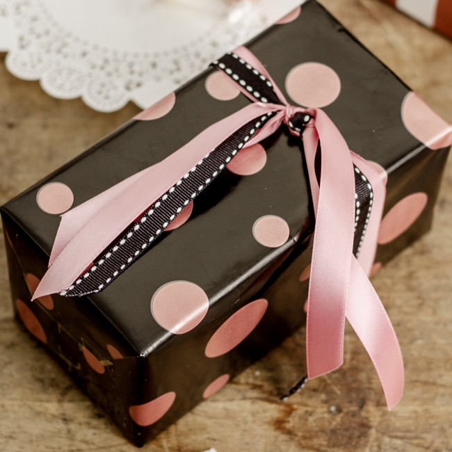 Rose Coloured Dots on black makes a big impact to your gift presentation.
