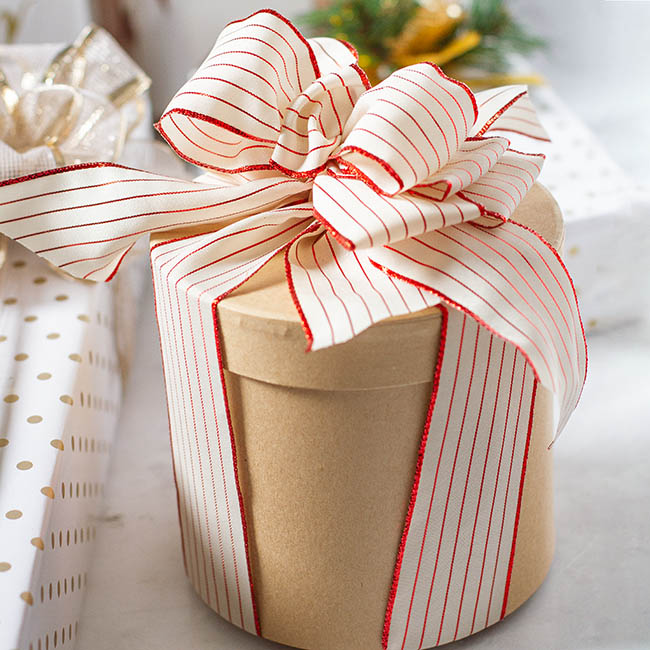 Create a stylish gift using kraft round boxes. Tie a beautiful bow to make a statement.