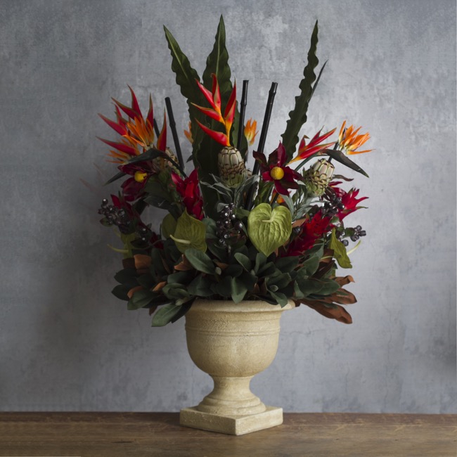 Combine natives and tropicals and display in an Urn and you will have one of the best flower arrangements for your special event.
