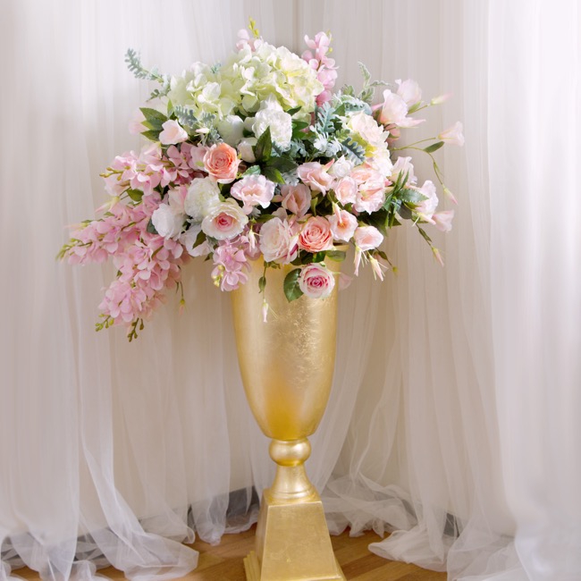 Convenient sized fibreglass urn has a shiny gold finish that brings an immediate wow factor when complete with flowers. Urn is fade resistant and lightweight.