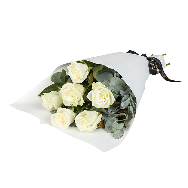 Interflora 6 White Rose Bouquet. Suitable for home and gifting.