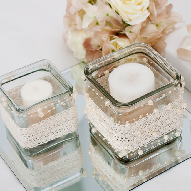 This versatile glassware can be dressed up for any occassion whether you are going for something natural or adding a bit of lace and pearls your design will stand out.