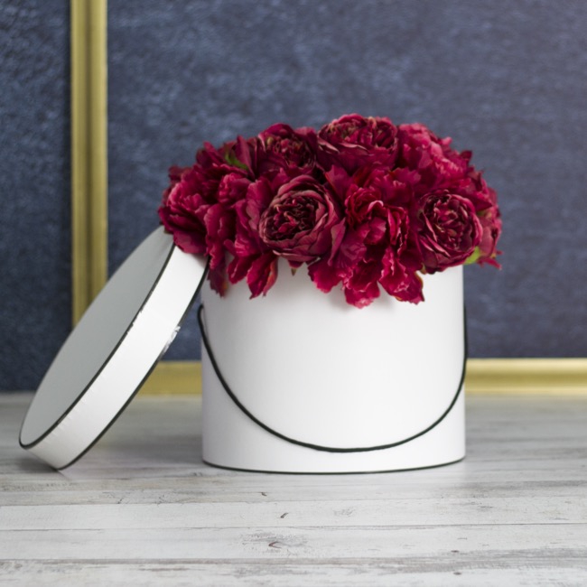 Love is saying I love you in with a red flower arrangement in a flower box.