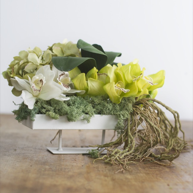 These metal footed trays make a great display for floral arrangements or candle displays. Small tray fits a full floral foam brick.