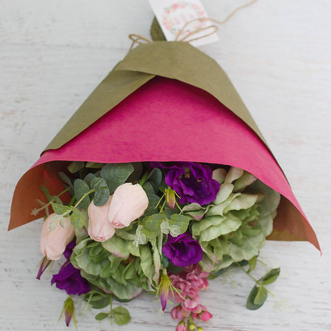 Mix and match your wraps with patterns and solid colours to add different textures and watch your bouquet come alive.