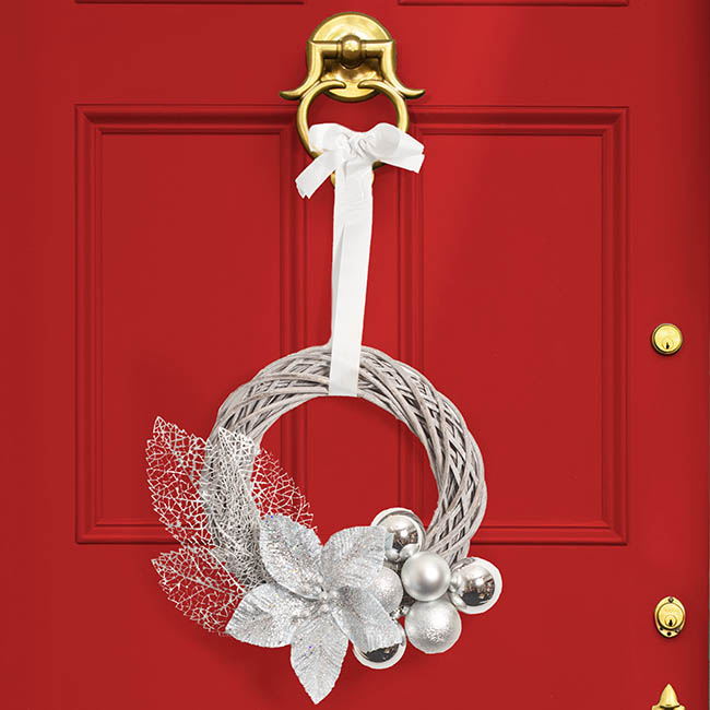 Add some decorative artificial flowers and Christmas baubles to create this stunning wreath. You can also leave it bare for a more classic look.