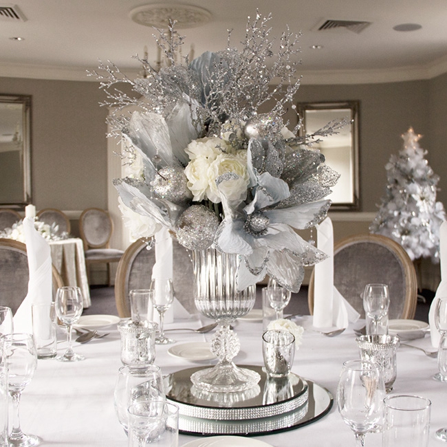 Bold statements are made with crystal vases filled with silver spray, fruits and flowers befitting corporate functions and Christmas Functions.