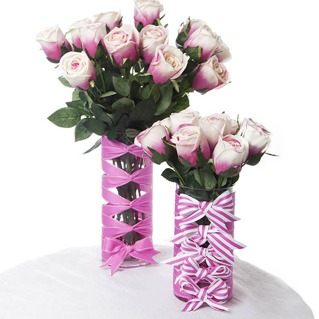 Bows are not only for wrapping presents, you can wrap them around a cylinder vase for that WOW factor. What a fabulous centrepiece this could be at your next Kitchen Tea or Birthday. They would also make a lovely gift for that someone special.