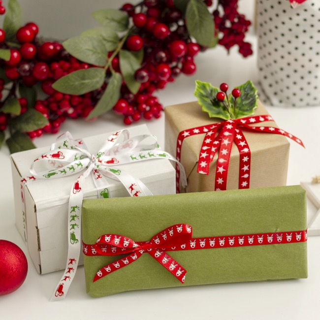 This Pack of three Satin ribbons in Christmas designs will make your wrapping easy for this season.