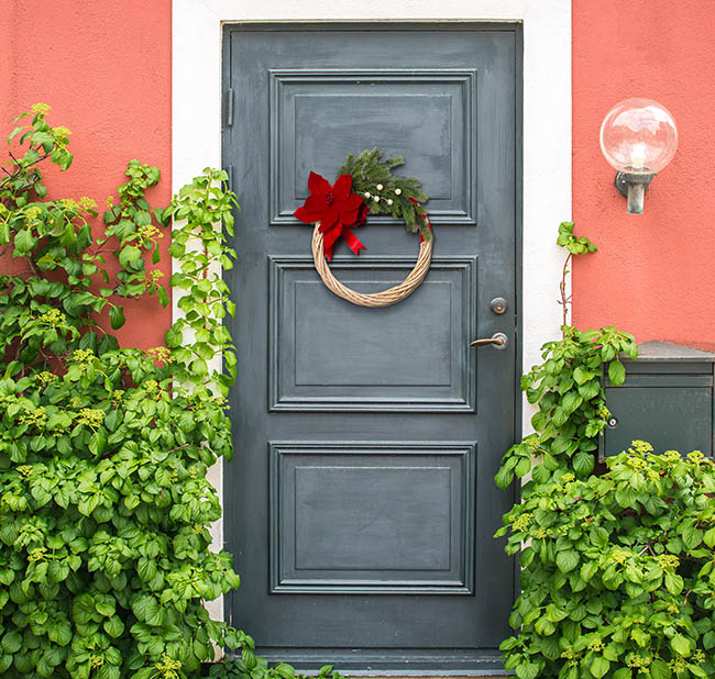 Using our willow wreath we have added a stunning red velvet poinsettia, green pine spray, white berries and finished off with a red ribbon. Such a stunning piece to hang on your door this festive season.