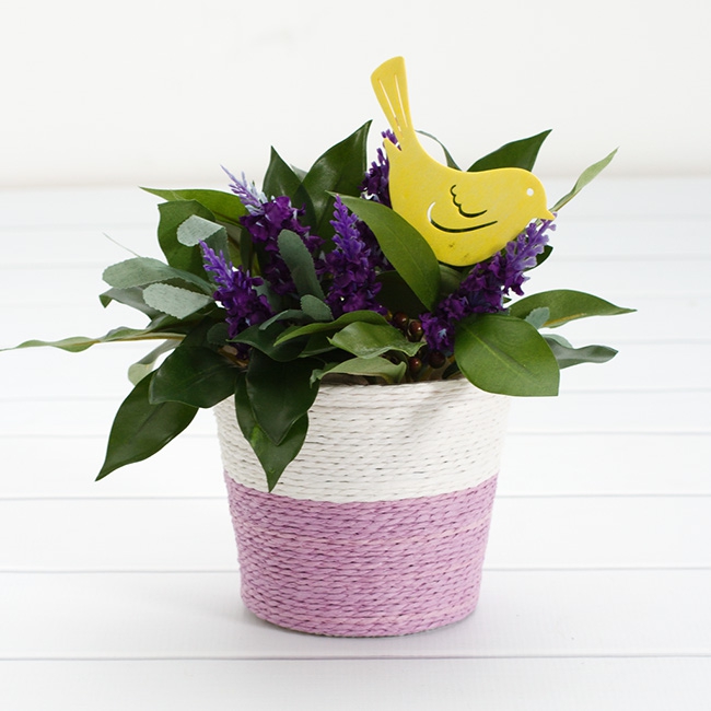 The ever popular lavender teamed with our yellow wooden bird pick will brighten up any area.